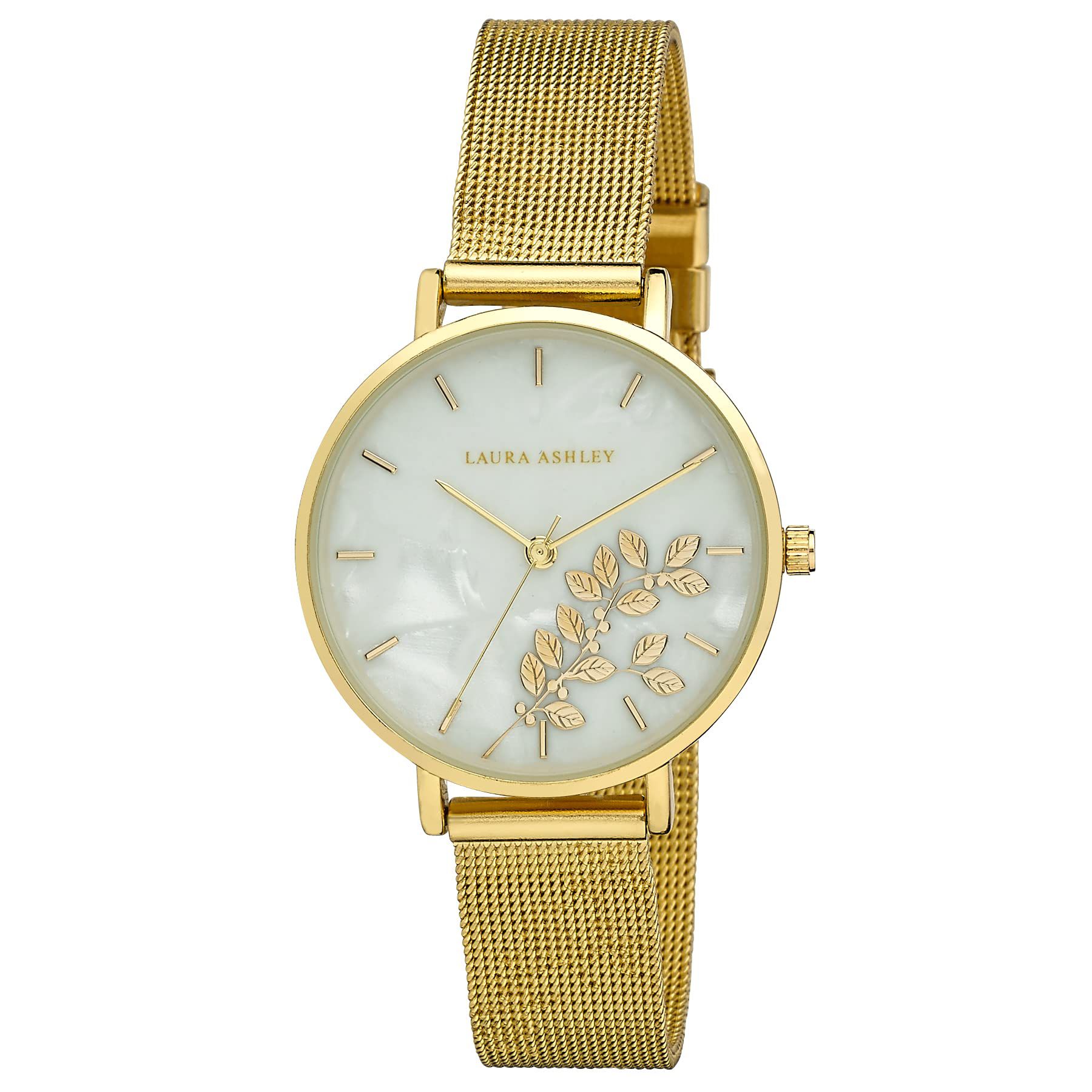 Adquira já o seu Laura Ashley Women's 34mm Engraved Floral Printed Gold Mesh Strap Watch (LA2041YG) e adicione um toque de elegância ao seu dia a dia!