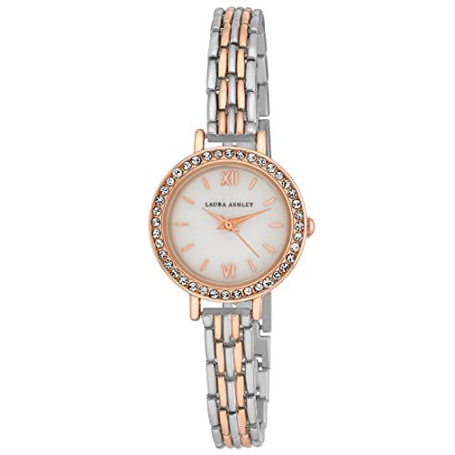 O Laura Ashley Women's 25mm Elegant Crystal Bezel Link Bracelet Watch é equipado com o movimento japonês de quartzo, garantindo precisão e confiabilidade na marcação do tempo. Além disso, o relógio apresenta um belo bezel cravejado de cristais que adiciona um toque de glamour ao seu design.