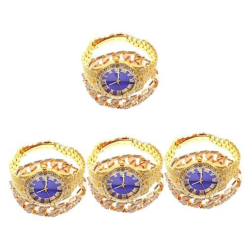 Seja notado com o elegante Mikikit 4 Sets Steel Belt Quartz Watch! Este relógio masculino possui um design impressionante, combinando a sofisticação do aço inoxidável com o brilho de diamantes. Além disso, o relógio esquelético oferece um toque moderno e elegante ao seu visual.