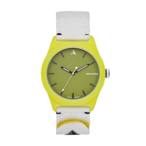 A NMS Comércio tem o prazer de apresentar o One Eleven (111) SWII Solar-Powered Bio-Plastic and rPet Recycled Fabric Watch, na bela combinação de cores Yellow e White. Este modelo, conhecido como CBOE2019, é um relógio ecológico fabricado com materiais sustentáveis, como plástico biodegradável e tecido reciclado rPet. Além disso, é alimentado por energia solar, tornando-o uma escolha consciente para quem se preocupa com o meio ambiente.