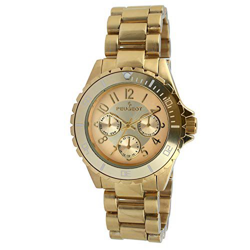Com a marca Peugeot, conhecida pela excelência em relógios, você terá a garantia de ter um produto de alta qualidade, durabilidade e estilo. Invista no seu visual com o Peugeot Unisex 14Kt Gold Plated Status Watch - Multi-Function Chrono with Metal Bracelet PP Peugeot 7059G e tenha um acessório que elevará o seu look para outro nível.