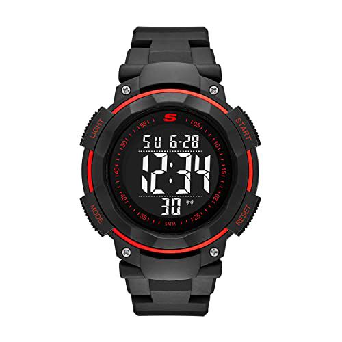 O relógio digital cronógrafo Skechers Men's Ruhland, modelo SR1022, é um produto moderno e sofisticado, que combina estilo e funcionalidade. Com sua coloração preta e vermelha, o relógio traz um design arrojado e urbano, perfeito para complementar o visual de homens que apreciam acessórios marcantes.