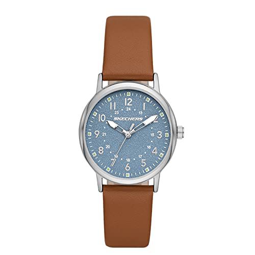 O Skechers Women's Glyndon Quartz Three-Hand Watch apresenta um design moderno e elegante, que combina perfeitamente com qualquer estilo. Seu mostrador de três ponteiros com detalhes em prata e ouro rosa confere um toque de sofisticação, enquanto a pulseira marrom dá um charme adicional ao relógio.