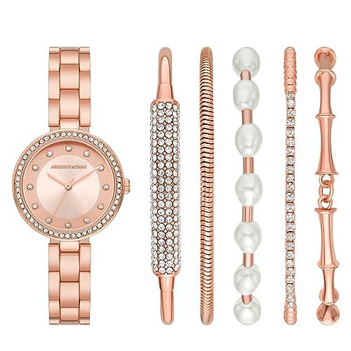 Procurando por um lindo conjunto de presente para uma mulher especial em sua vida? Então você vai adorar o conjunto de presente de relógio e pulseira Skechers Women's Quartz Three-Hand Watch & Bracelet Gift Set, na cor Rose Gold (Modelo: SR9079). Este elegante conjunto é perfeito para adicionar um toque de glamour ao visual de qualquer mulher.