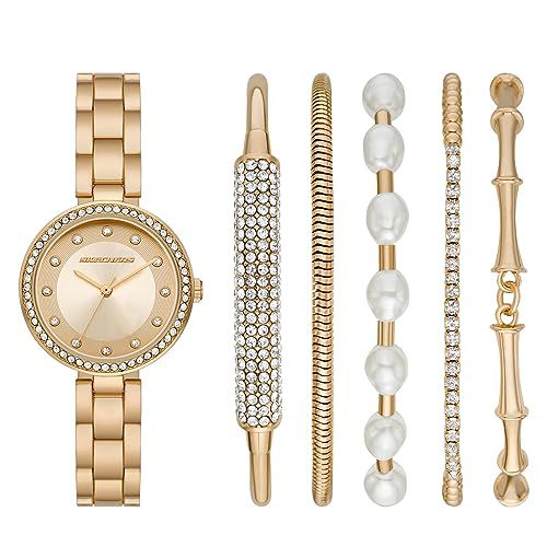 Procurando por um relógio elegante e versátil para presentear a si mesma ou alguém especial? O Skechers Women's Quartz Three-Hand Watch & Bracelet Gift Set, modelo SR9084, é a escolha perfeita! Este conjunto deslumbrante vem em uma linda cor dourada para adicionar um toque de glamour a qualquer look.