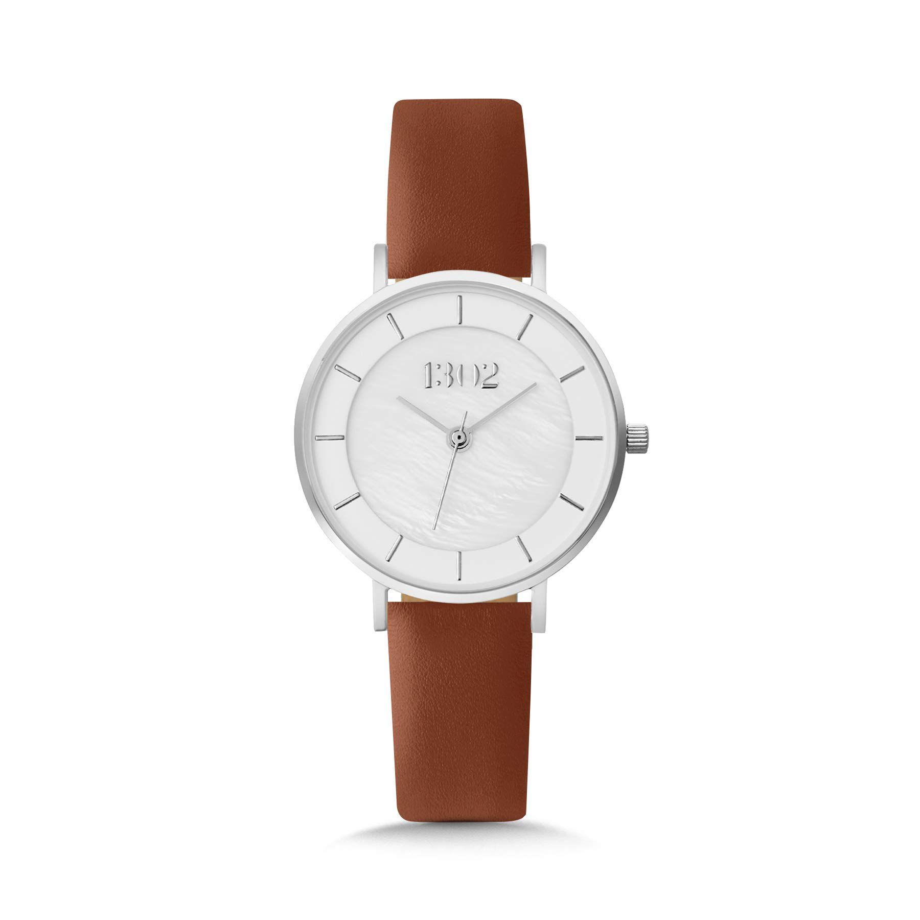 O Reloj De Mujer - Reloj Mujer - Silver Watch Women - Womens Wrist Watch - Wrist Watch for Women - Pearl Watch - Interchangeable Watch - 32mm Watch - Silver Face Watch - Brown Leather Watch - 1302 THIRTEEN.02 W_32_S-MOP é um relógio feminino elegante e versátil, perfeito para adicionar um toque de sofisticação ao seu visual. Com um design moderno e atemporal, este relógio possui uma pulseira de couro marrom e uma caixa de 32mm em prateado, criando um contraste elegante.