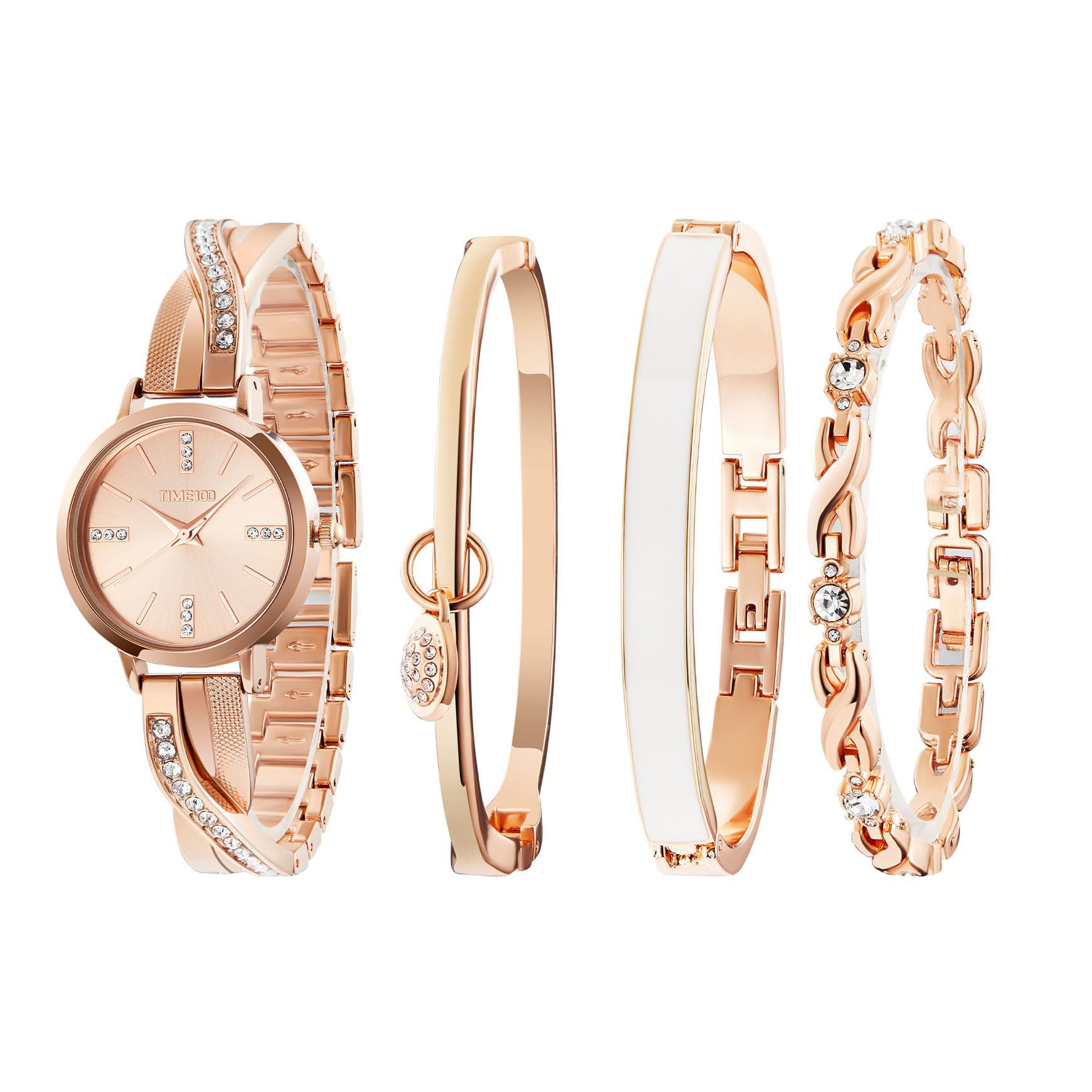 Produto: TIME100 Women's Bangle Watch and Rose Gold Watch Chain Bracelets Premium Crystal Accented Bracelet Set TIME100 W50888L.02A