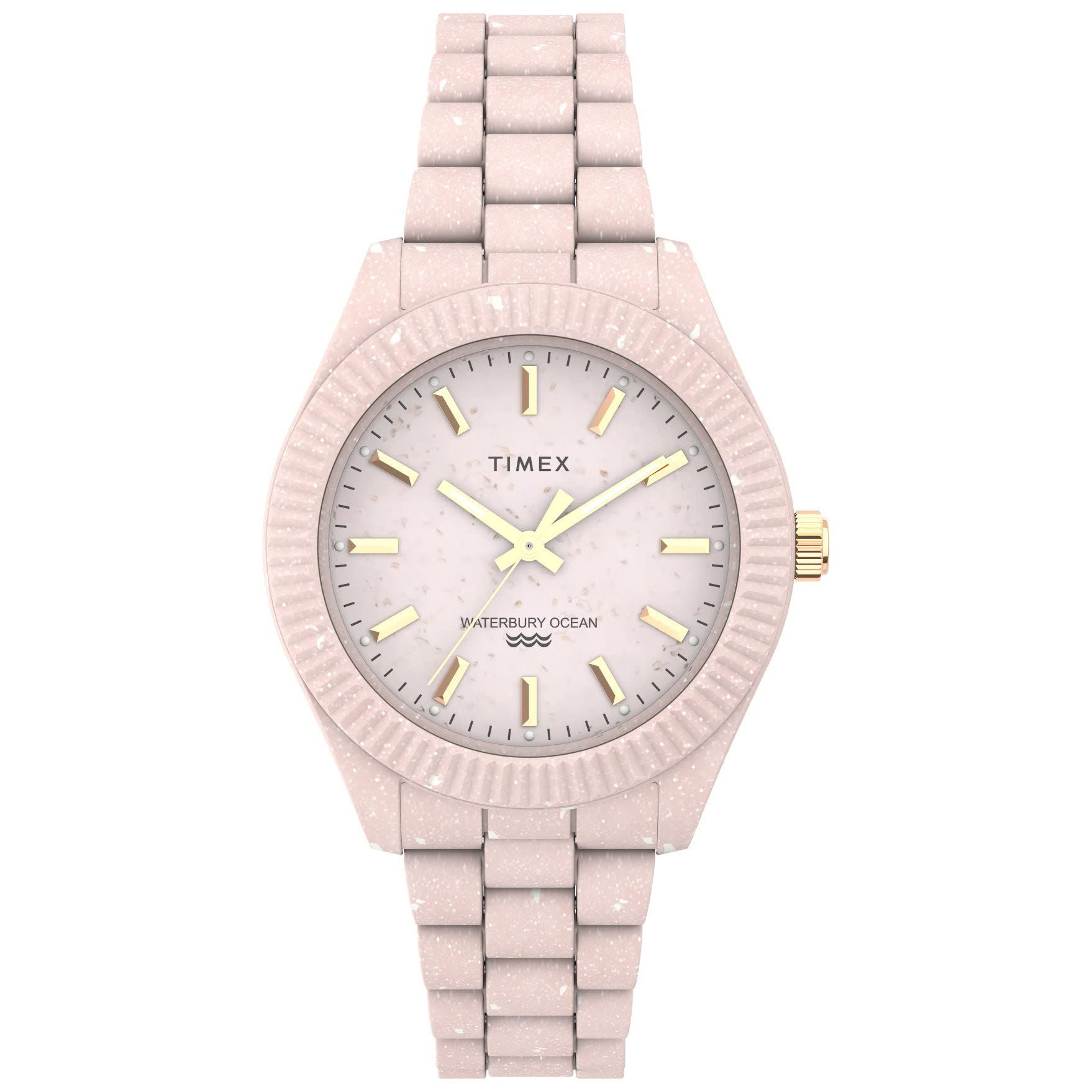 O Timex Women's Waterbury Ocean Recycled Plastic 37mm Watch - Triple Pink Timex TW2V33100JR é resistente à água, o que o torna ideal para uso diário, seja no trabalho, em encontros casuais ou em atividades ao ar livre. Seja para dar um toque de cor ao visual ou para fazer uma declaração de moda sustentável, este relógio é a escolha perfeita.