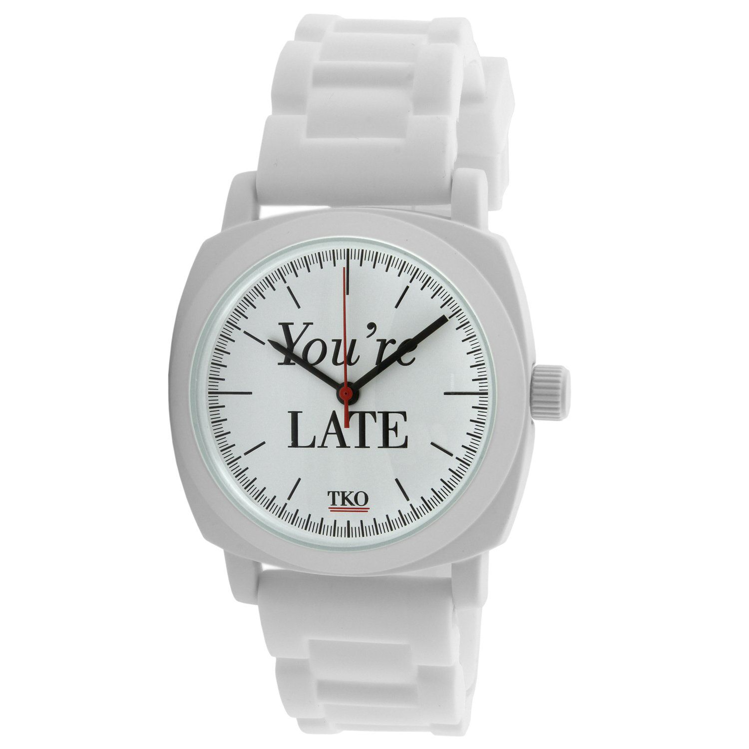O TKO TK584L-WT tem um mostrador grande com a frase You're Late em destaque, adicionando um toque de humor ao seu visual. Com um mecanismo de alta qualidade, este relógio não só é estiloso, mas também preciso e funcional.