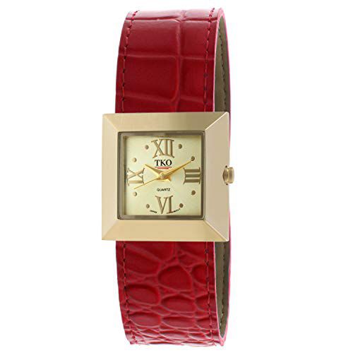 A NMS Comércio apresenta o TKO Women Square Petite Wrist Slap Watch with Roman Numerals & Leather Bracelet with Magnetic Closure TK619-GCR, o relógio de pulso perfeito para mulheres que buscam estilo e funcionalidade. Este elegante relógio vermelho possui uma pulseira de couro com fecho magnético, garantindo conforto e praticidade ao usar.