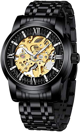 O design elegante deste relógio é aprimorado pela pulseira de aço inoxidável e mostrador esqueleto, proporcionando um visual sofisticado e moderno. Além disso, o mostrador é adornado com diamantes, adicionando um toque de luxo e refinamento a este acessório. A cor preta confere um visual versátil e atemporal a este relógio, garantindo que ele seja uma escolha incrível para qualquer ocasião.