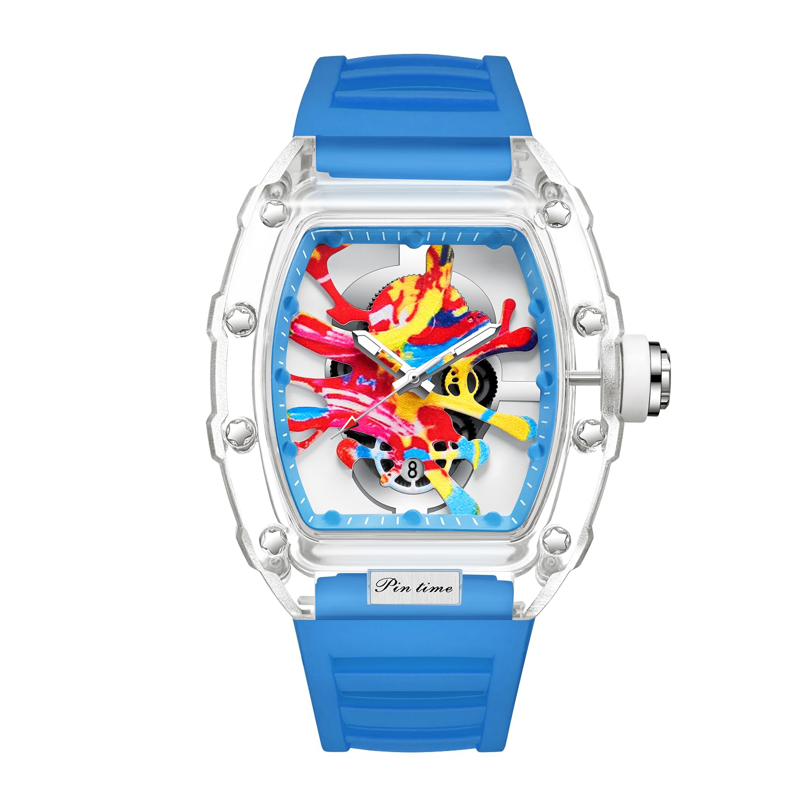 O DROCUAMGOYA Men Fashion Watches Graffiti Art Dial Skeleton Quartz Silicone Band Date Analog Wrist Watch for Men não só impressiona pelo design inovador, mas também pela funcionalidade. Equipado com movimento de quartzo de alta precisão, este relógio garante a hora certa em todos os momentos. Além disso, a função de data torna-o ainda mais prático para o dia a dia.