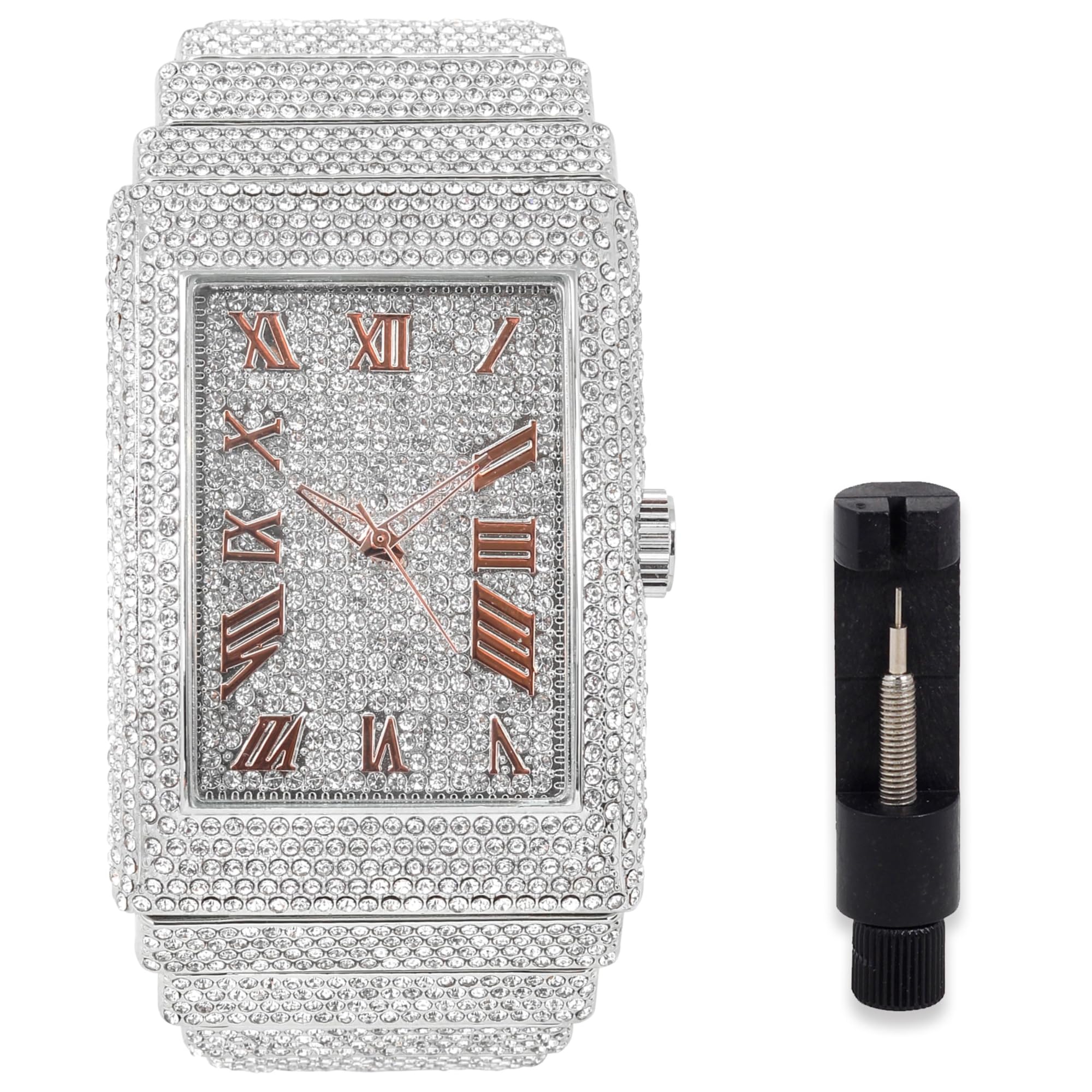 Compre agora o ICE STAR Mens Rectangle 40mm Iced Diamond Watch - Brilliant Crystals, Bling-ed Out Roman Dial, Iced Bezel - Fully Iced Out Band with Adjustable Sizing - Gun Finish ICE STAR 9832-173-MB e adicione um toque de glamour ao seu visual. Aproveite frete grátis para todo o Brasil e entrega rápida na NMS Comércio.