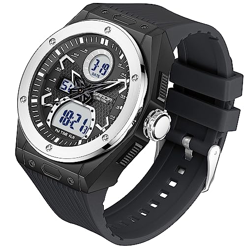 Além disso, o KXAITO Men's Watches possui cronômetro, data e outras funções que o tornam um relógio completo e indispensável para homens modernos e ativos. Seu design em preto e prata é elegante e versátil, combinando com diferentes estilos e ocasiões.
