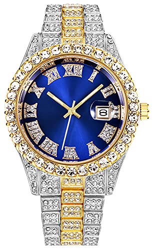 Seja notado com o LGXIGE Mens Big Rocks with Roman Numerals Fully Ice Out Colorful Dial Gold Watch (Silver Gold Blue) LGXIGE V1278. Este elegante relógio é um verdadeiro destaque, com sua combinação de cores prateada, dourada e azul que certamente atrairá todos os olhares. Os marcadores romanos dão um toque clássico e sofisticado, enquanto o mostrador colorido totalmente enfeitado com pedras proporciona um estilo moderno e luxuoso. Feito com materiais de alta qualidade, o LGXIGE V1278 é durável e resistente, garantindo que você sempre esteja na moda. Compre agora na NMS Comércio e adicione um toque de glamour ao seu visual!
