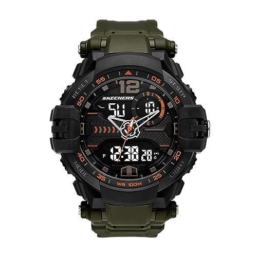 Skechers Men's Sullivan Analog-Digital Watch, Color: Black, Olive Green (Model: SR1160) é um relógio digital e analógico de alta qualidade da renomada marca Skechers. Este modelo, o SR1160, possui um design elegante e moderno, com a combinação de cores preto e verde oliva, conhecido como Sullivan Green.