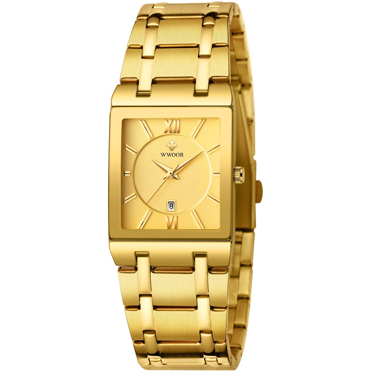 Procurando por um relógio masculino elegante e de alta qualidade? Apresentamos o WWOOR Square Watches for Men, um relógio quadrado em aço inoxidável com data, original, à prova d'água, movimento analógico de quartzo, perfeito para um visual de moda casual e de negócios. O design moderno e sofisticado deste relógio é ideal para os homens que prezam por estilo e funcionalidade. O WWOOR 8858-A1-Gold é na cor ouro, conferindo um toque de luxo e sofisticação ao seu visual. Não perca a oportunidade de adquirir este incrível acessório e adicionar um toque de classe ao seu dia a dia. Compre agora na NMS Comércio e eleve o seu estilo a um novo patamar!