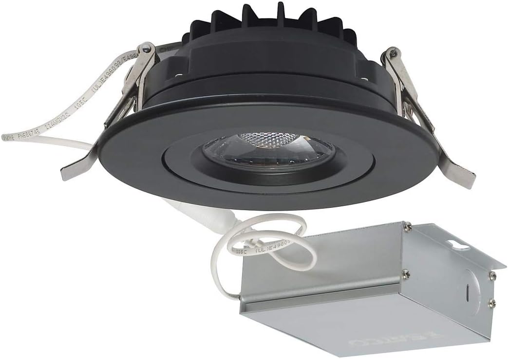 Este produto é uma luminária de teto contemporânea da marca Satco, feita de alumínio na cor preta. Com dimensões de 5.4L x 3.54W x 5.4H, é indicada para uso em espaços residenciais e comerciais, sendo uma fonte de luz LED com potência de 12 watts e voltagem de 120 volts. O método de controle é remoto e ela possui 850 lúmens de brilho, proporcionando uma luz branca quente. Sua instalação é do tipo montagem de teto e possui uma garantia limitada do fabricante de 5 anos. Além disso, conta com certificação Energy Star. Esta lumin