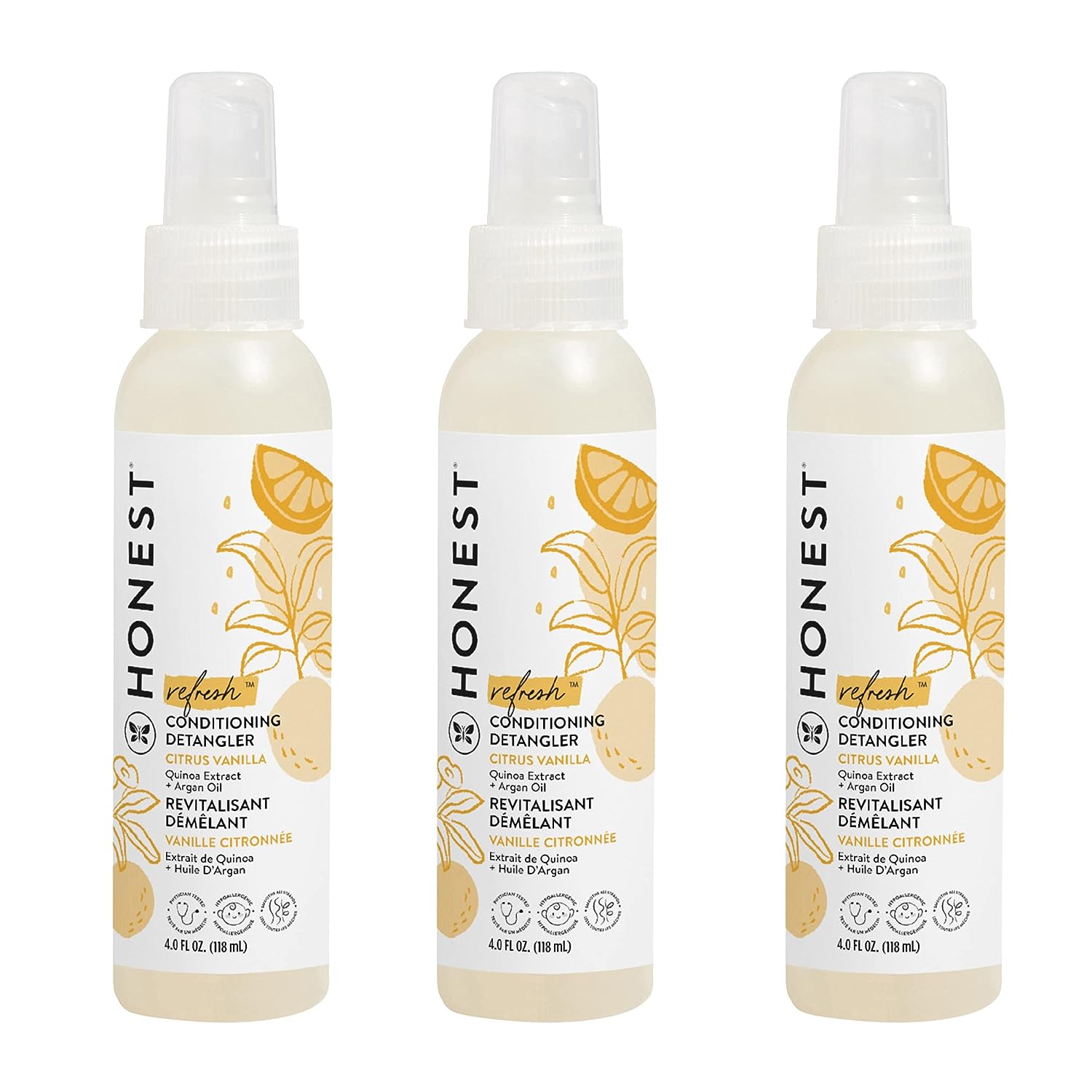 The Honest Company Desembaraçador Condicionante de Cabelo 3-Pack | Condicionador sem enxágue + Spray Fortificante | Livre de lágrimas, livre de crueldade, hipoalergênico | Citrus Vanilla Refresh, 4