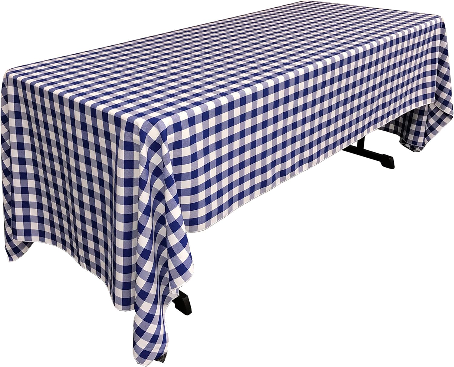 A toalha de mesa xadrez azul e branca LA Linen é feita de poliéster 100% fio tingido, com dimensões de 126 L x 60 W. Ela possui um estilo campestre francês e é perfeita para ocasiões especiais, como banquetes de formatura ou churrascos no quintal. Essa toalha de mesa é resistente a rugas, fácil de manter e pode ser lavada à máquina. Ela é feita nos EUA e é durável o suficiente para uso diário. Adorne a sua área de jantar com este design clássico e atemporal em 9 opções de cores diferentes.