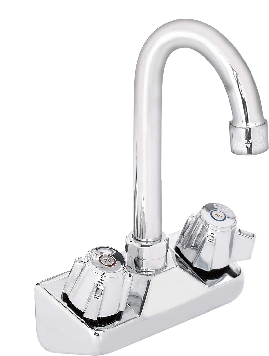Torneira de pia de cozinha sem chumbo - DuraSteel 4 Torneira de pia de cozinha comercial de parede central montada com bico de ganso de 3-1/2 - Certificado NSF - Manípulos dup