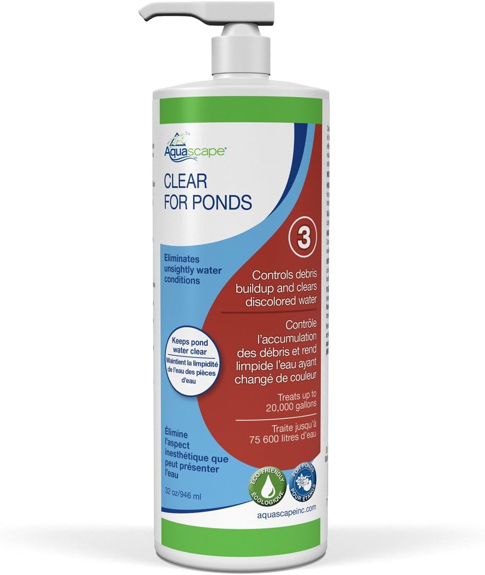 Tratamento Aquascape CLEAR para Água de Lagoas de Carpas e Peixes, Mistura de Clarificadores para Limpar Água Turva ou Descolorida e Reduzir Detritos, 32 onças / 946 ml | 96067