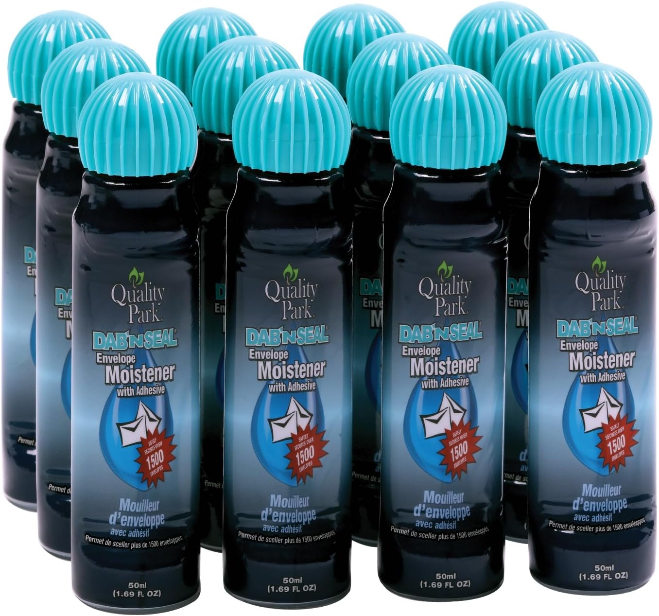 Umedecedor de envelopes a granel da Quality Park Dab-N-Seal com Adesivo, para selar envelopes de forma segura, artesanato em papel e mais, frascos de 50 mL, pacote com 12 unidades (QUA46062)