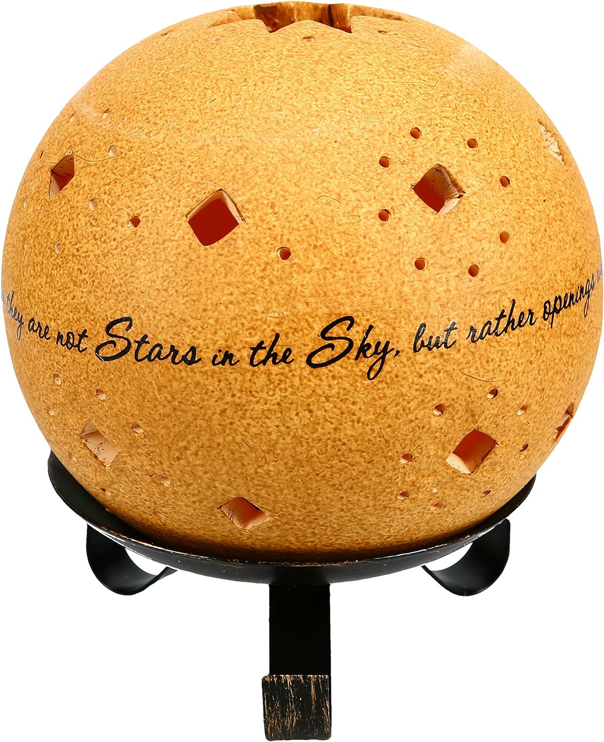 Comfort Candles In Memory é um item cuidadosamente projetado para aqueles que desejam homenagear e lembrar seus entes queridos. Feito de terracota de alta qualidade, este suporte de vela para tealight possui uma linda citação inspiracional Talvez elas não sejam estrelas no céu, mas sim aberturas onde nossos entes queridos brilham para nos fazer saber que estão felizes. O diâmetro do suporte é de 4 polegadas e o tamanho total, incluindo o suporte, é de 6,5 polegadas de altura, largura e profundidade. Além disso, este produto inclui uma vela teal